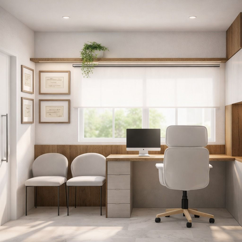 Projeto pensado para unir funcionalidade, conforto e elegância em um ambiente contemporâneo. A marcenaria sob medida, os tons neutros e a iluminação acolhedora criam uma atmosfera sofisticada e ao mesmo tempo convidativa. Cada detalhe foi planejado para otimizar o espaço, valorizar a experiência do cliente e garantir praticidade no dia a dia profissional, traduzindo uma arquitetura limpa, equilibrada e atemporal.